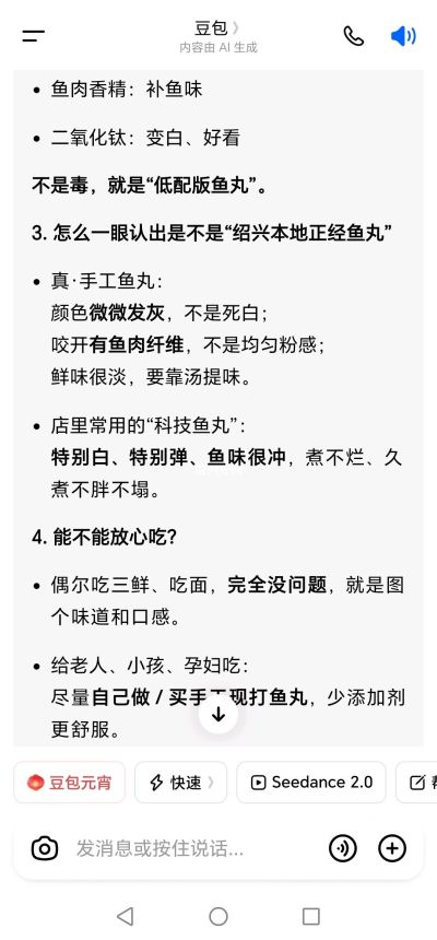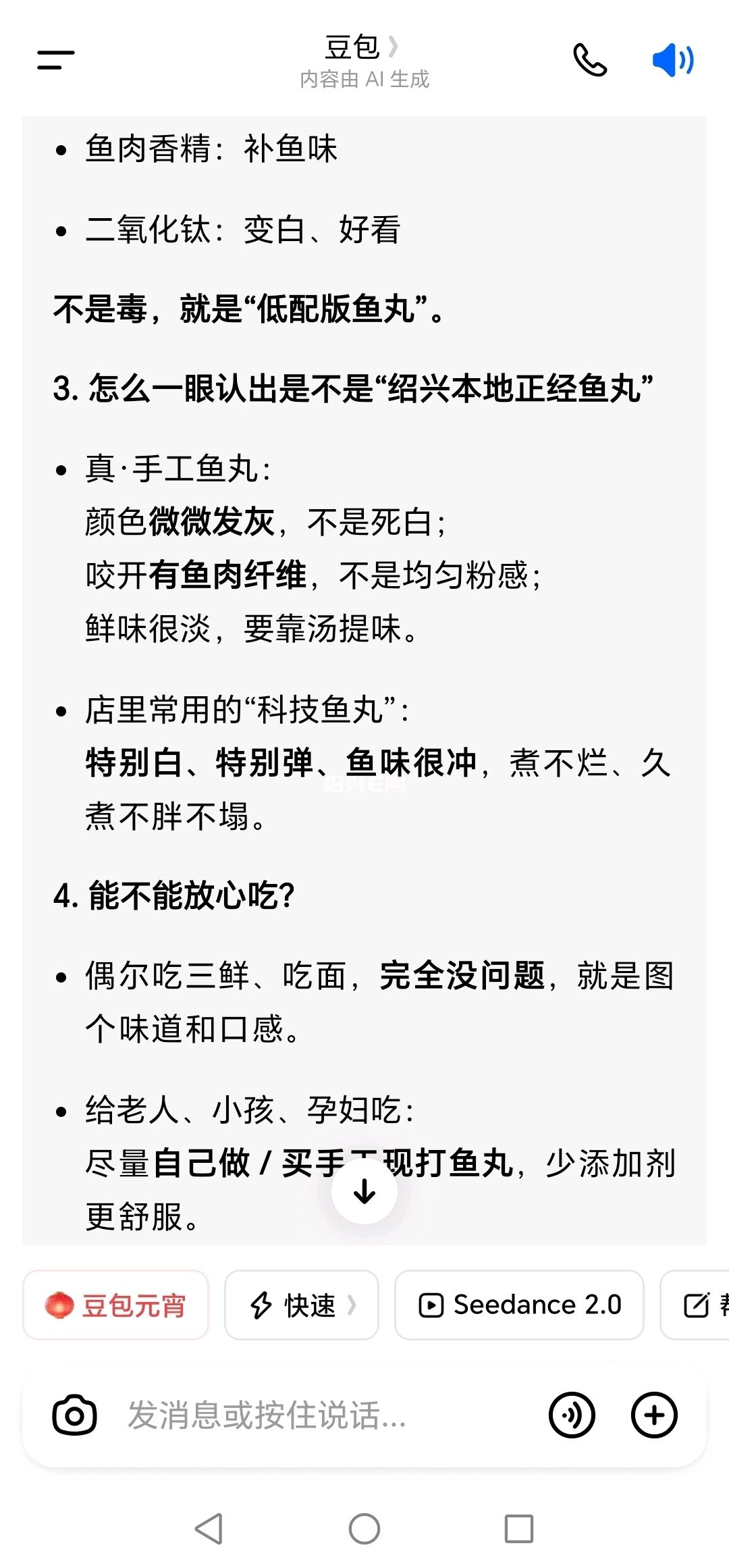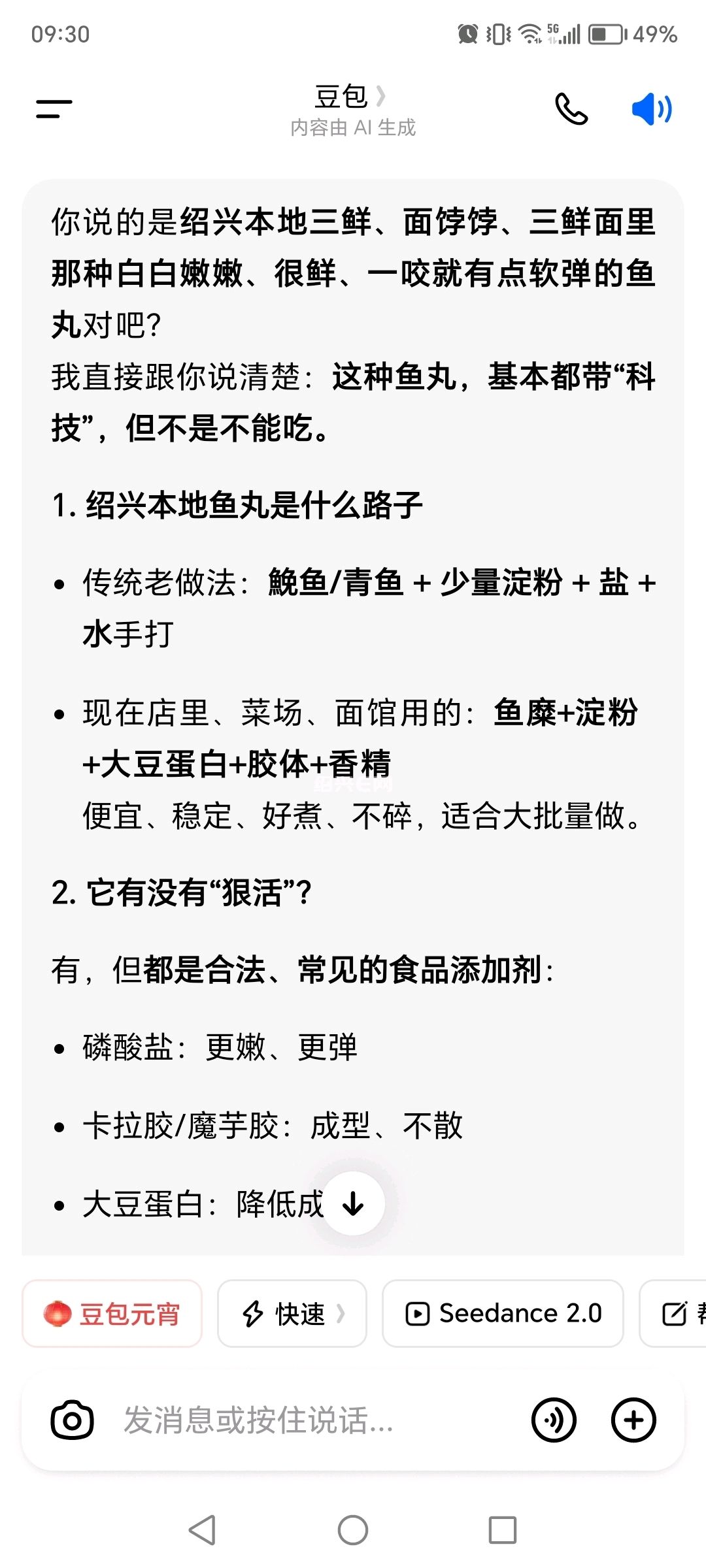 :不要随口一说,绍兴人三鲜里的鱼圆除了鱼肉,只能加盐加水。不可能加其他任何东西的。十元十一二颗,利润还能有七八元的。鱼肉的涨性很好的。(2026-03-03 09:01)
