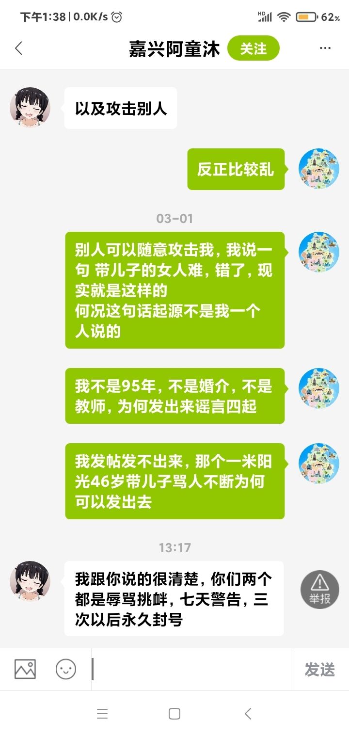 :看看这个嘉兴19楼网管红娘权利多大,别人可以攻击我,我不可以说一句,动不动威胁,我和她说清楚她说我干嘛攻击她[图片](2026-03-02 13:40)