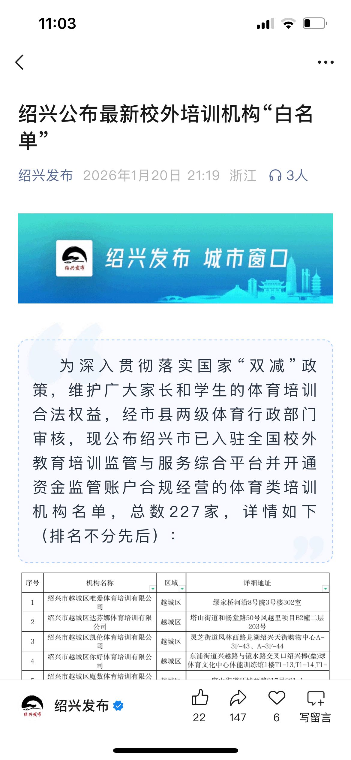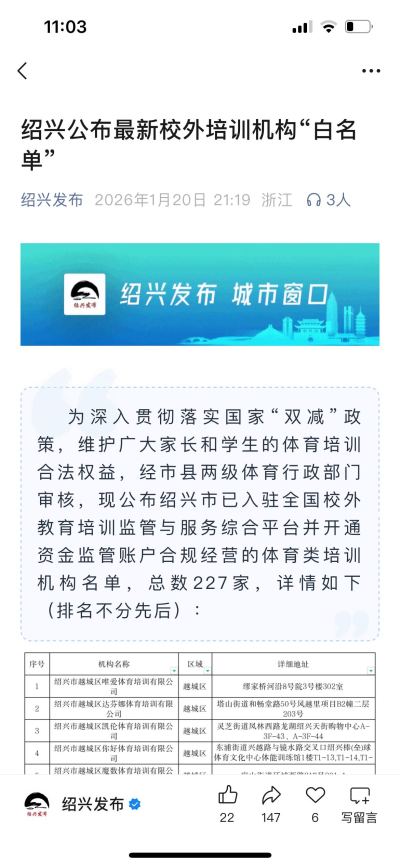 2026年1月20日绍兴发布培训机构白名单,2月初作为白名单的“龙格”闭店跑路。希望广大家长擦亮眼睛,不要相信所谓的白名单。有gf背书的白名单机构拿着“白名单”幌子拉生源,事实是“白名单”没有任何保障。白名单与黑名单的差距只是一个闭店,白名单机构拿着幌子麻痹家长,让家长放松警惕,以为白名单的机构是安全的,比黑名单更可怕。想问问大家,报培训班打钱都打进监管账户的吗?