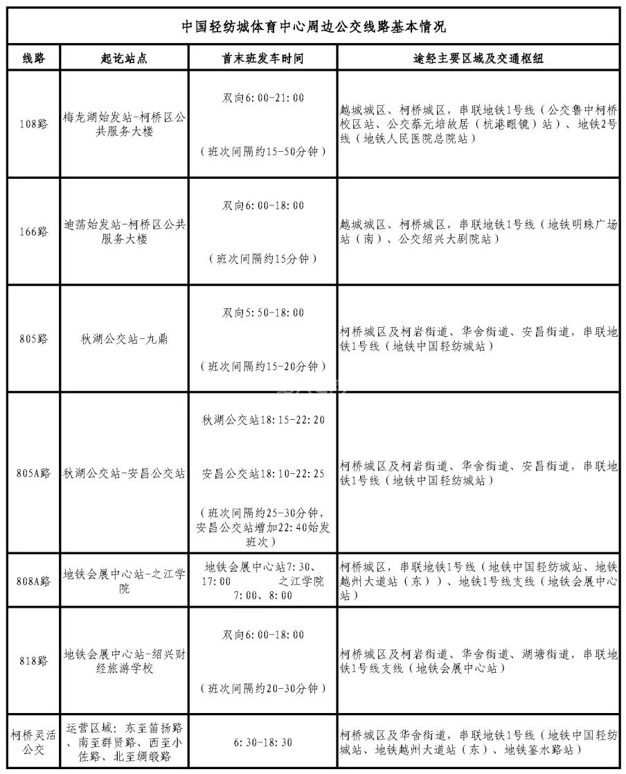 公交出行:建议乘坐805/805A路、808A路、108路、166路、818路、柯桥灵活公交至中国轻纺城体育中心附近,下客站点为柯桥区公共服务大楼、绸缎小区(游泳馆)站,下站后步行约5分钟到达演唱会场馆。