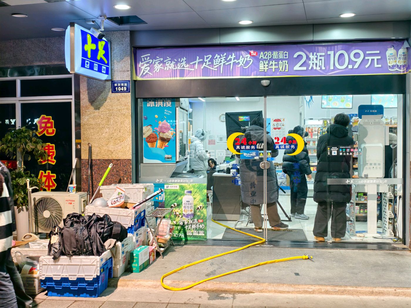 近日,在绍兴解放南路城南大桥附近的十足便利店,偶遇短剧拍摄。店内架起专业设备,工作人员忙碌作业,24小时营业的便利店变身片场,吸引了不少路人驻足。
