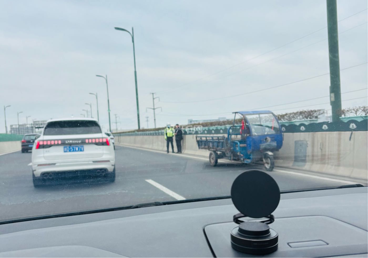 329越东北路高架惊现逆行三轮车