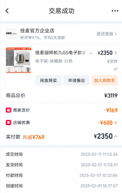 品牌佳麦,型号7LGS电子款,购入时间23年2月份,轻度使用,外观完好,现800出,越城区城南上门自提。联系加WX:13857575856