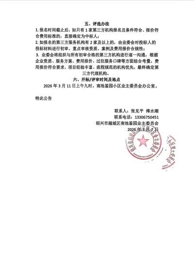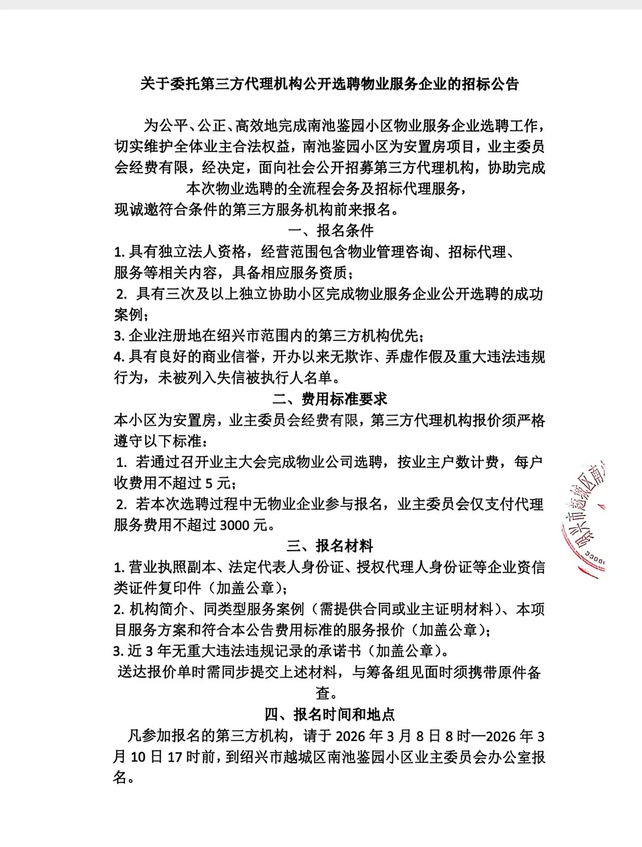 关于南池鉴园小区委托第三方代理机构公开选聘物业服务企业的招标公告