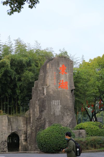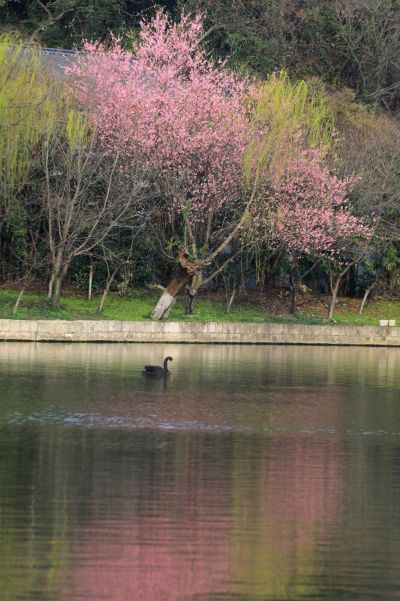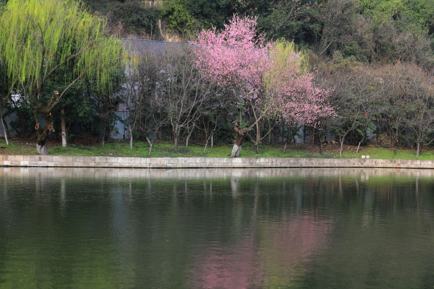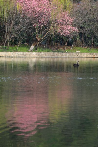 :柳绿桃红如霞染,东湖碧水净无尘。