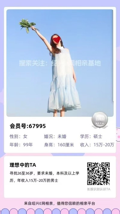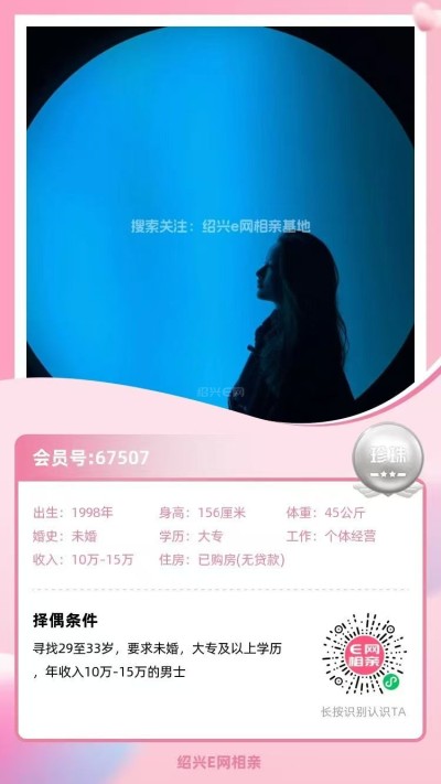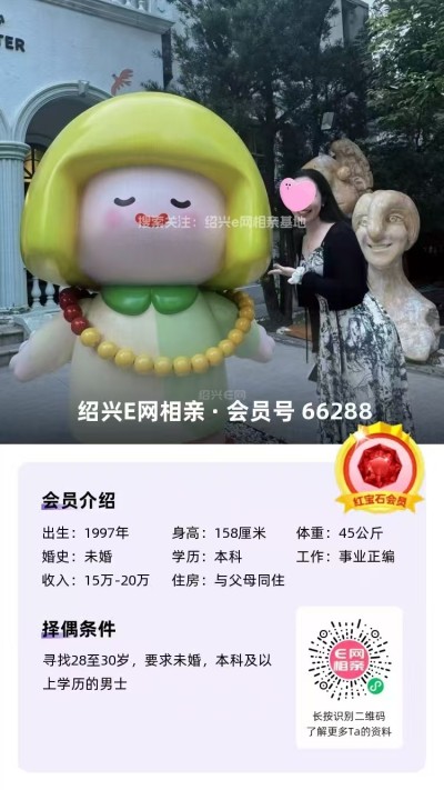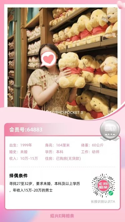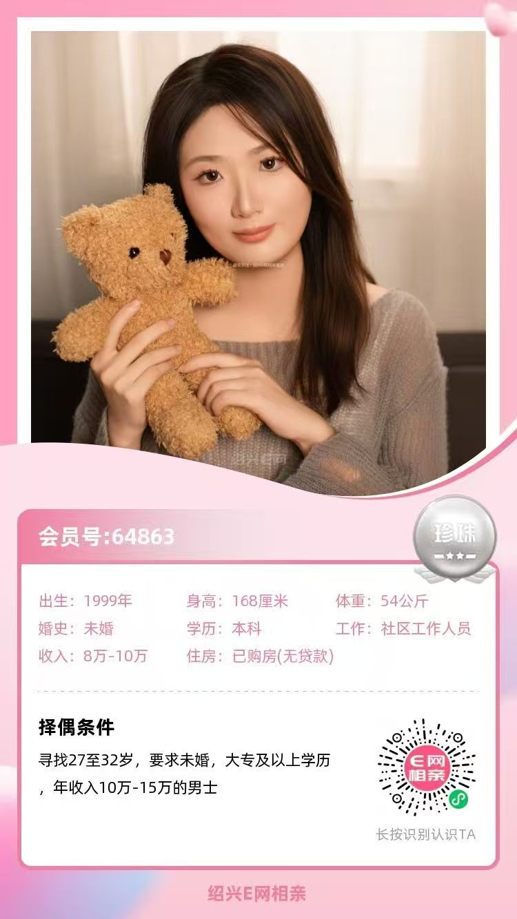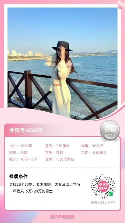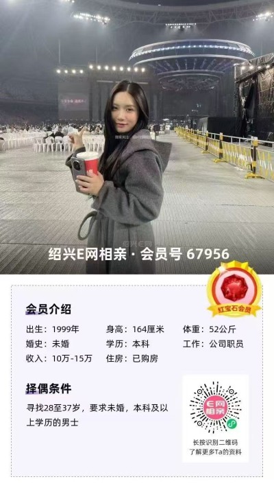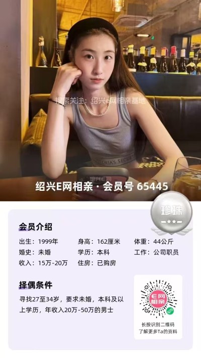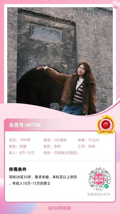 3、99年越城小姐姐,身高168,本科学历,社区工作,年薪8-10万,有房有车。
