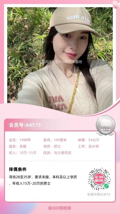 绍兴人在上海工作,独生女,硕士学历,设计师,年薪10-15万。