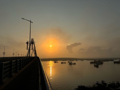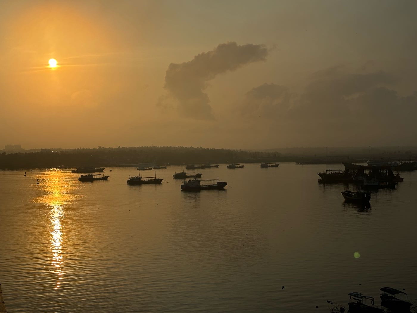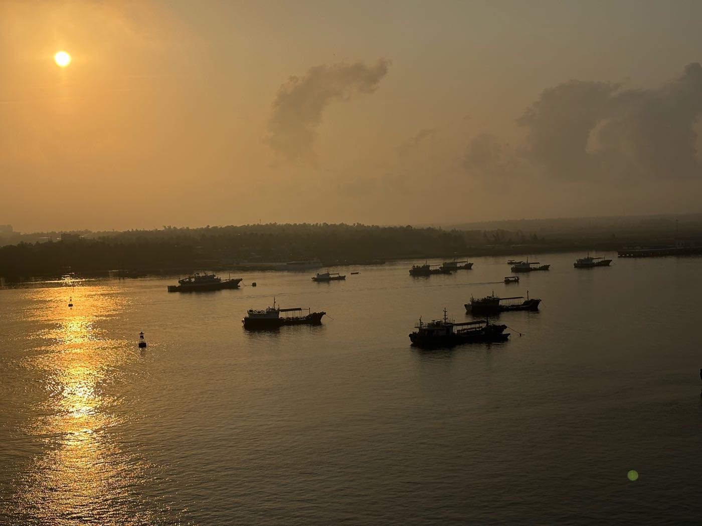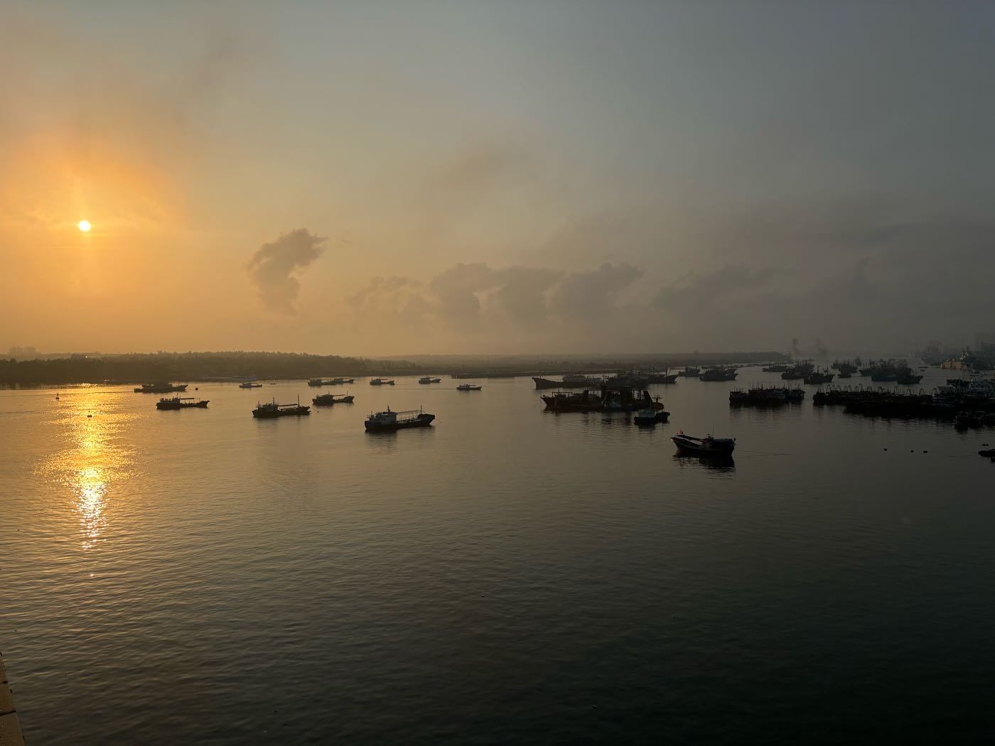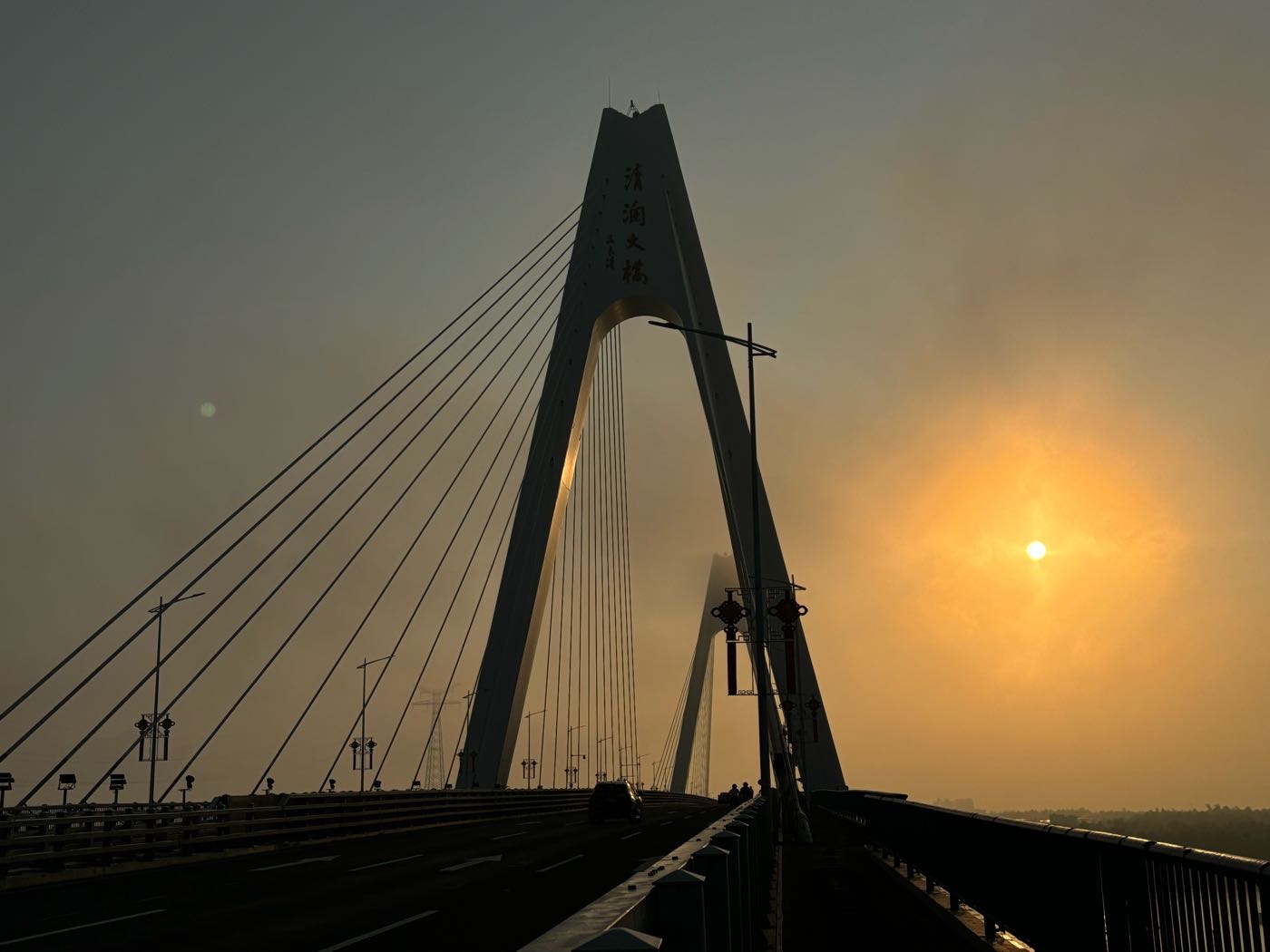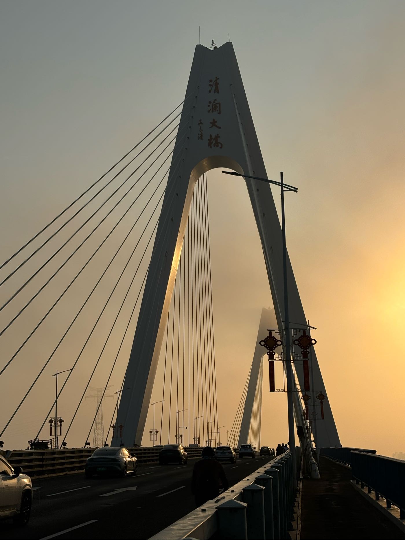 昨天路过看到,一桥及桥下宽阔河流,在晨阳下,渔船点点,非常漂亮,便决定今晨前往。然后,就是那么的无奈,今晨雾锁大桥,太阳出来的朦胧又朦胧……