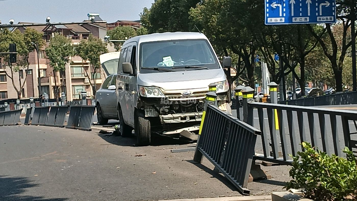 刚刚平江路与涂山路交叉口往南方向发生机动车撞护栏交通事故,开车注意安全