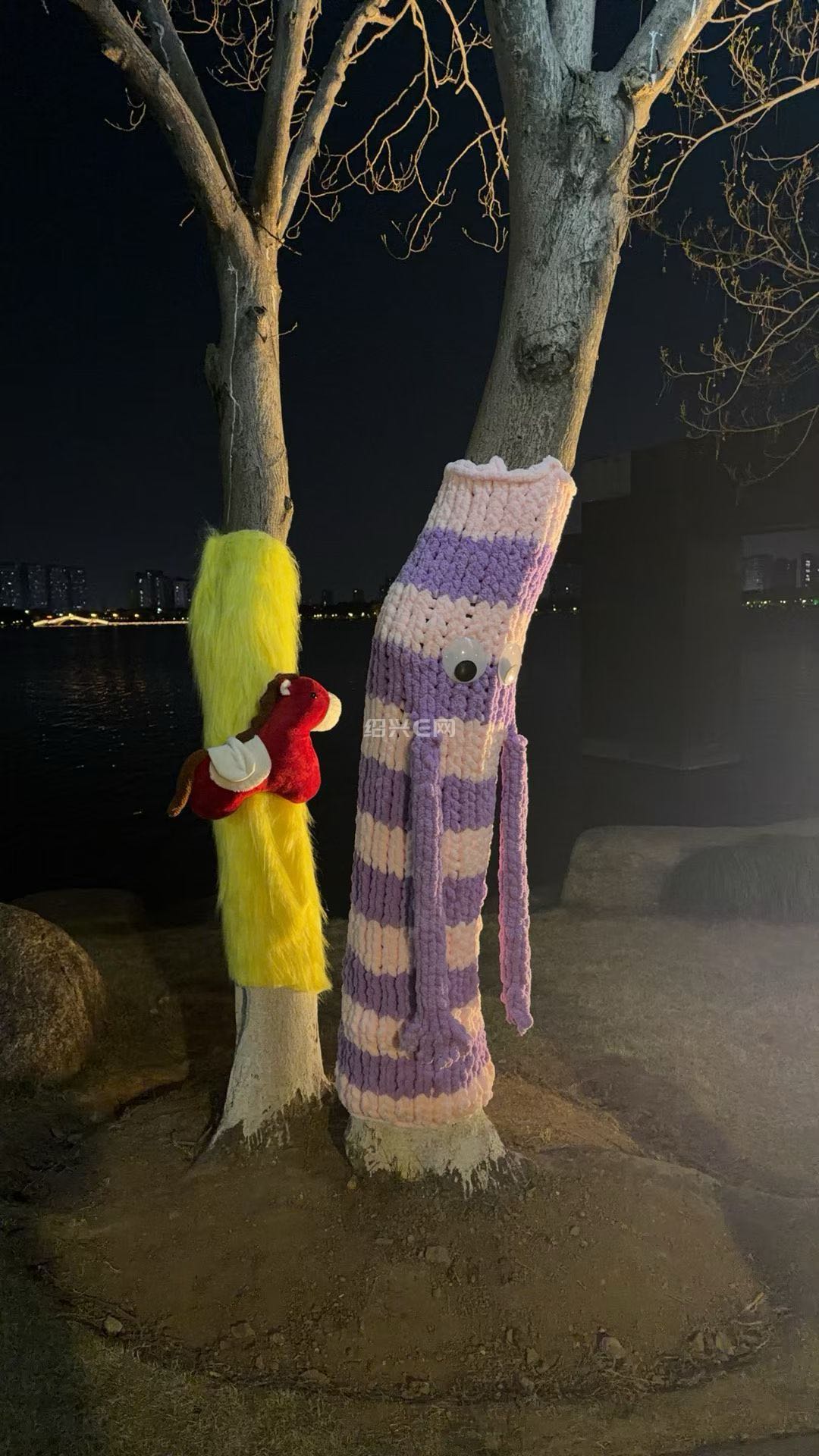 高档风景区,高档写字楼附近的树在冬天穿毛衣对树四有益的,春夏秋没有必要给树穿毛衣,因为树有自己喜欢的衣服--树皮。