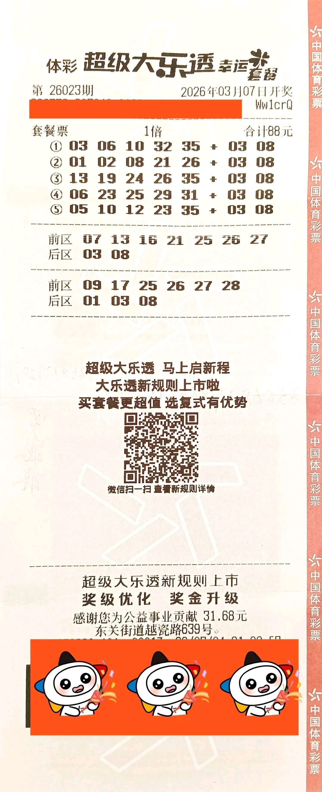 3月7日,体彩大乐透第26023期开奖,当期全国中出6注一等奖,单注奖金717万元,其中2注追加,追加奖金574万元。