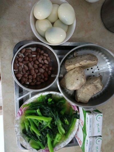 花生+青菜+鸡蛋+馒头+牛奶