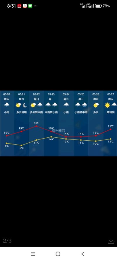 随着气温开始逐日回升,周日绍兴的最高气温冲出“2”字头,接近24℃,体感有些暖湿,但同时也再次迎来雨天。