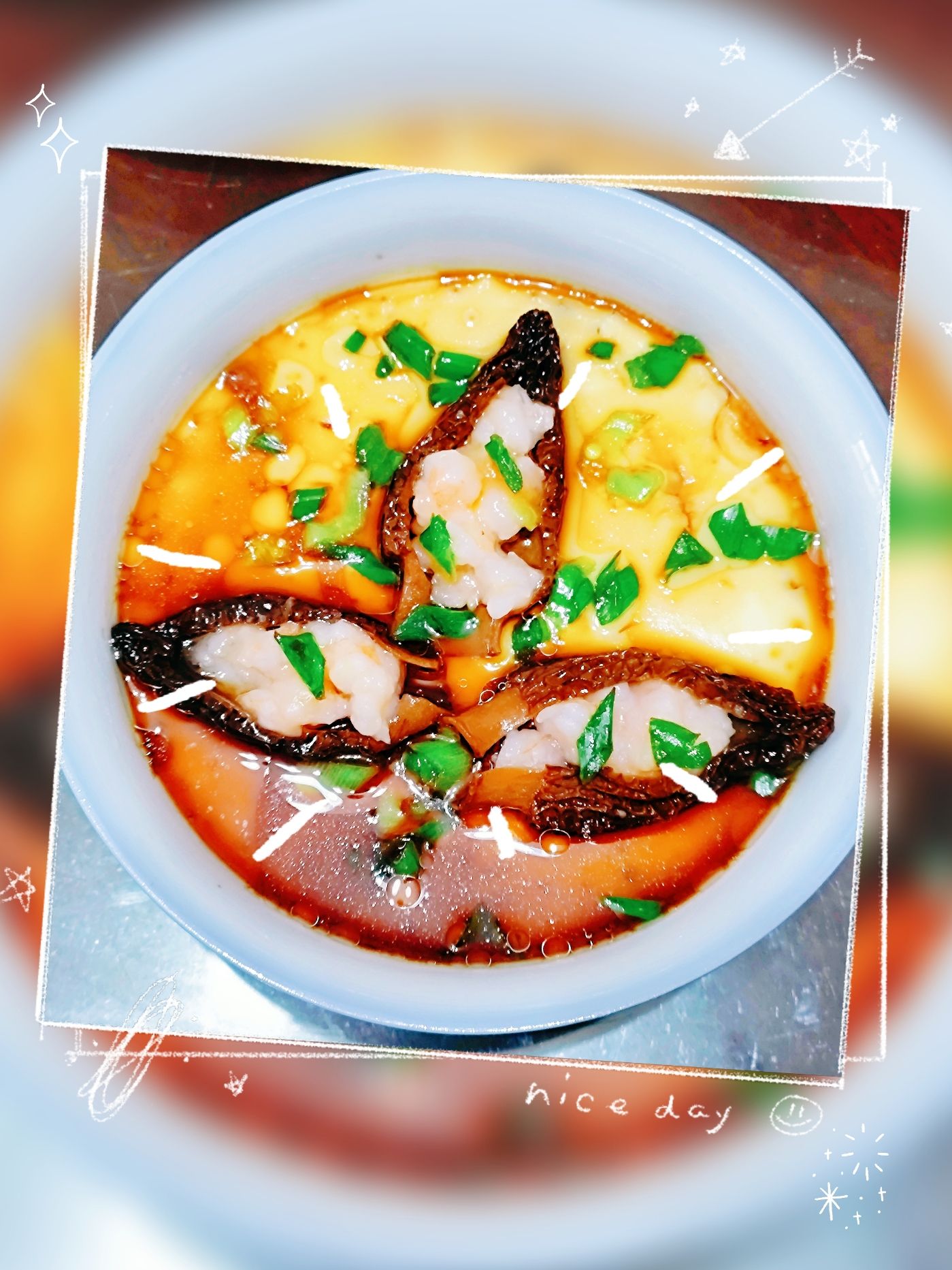 图二是鹅蛋蒸羊肚菌虾滑,向小红书学的,也很好吃!