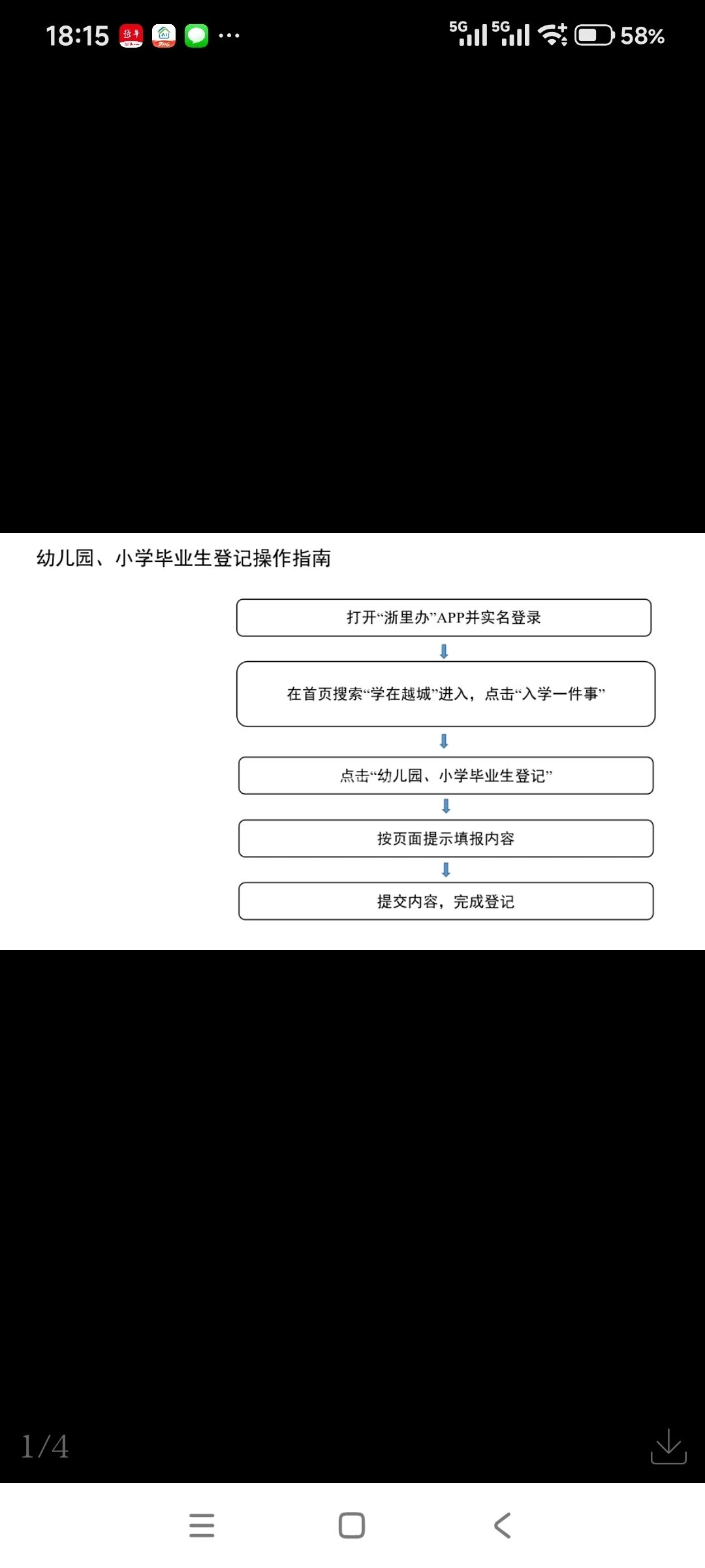 下载、安装并登录“浙里办APP” → 搜索“学在越城” → 点击进入“入学一件事” → “幼儿园、小学毕业生登记”。