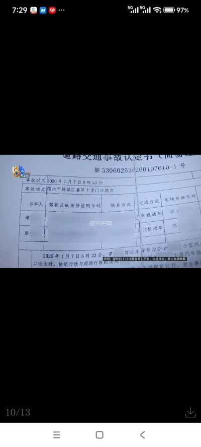 根据交警的认定书