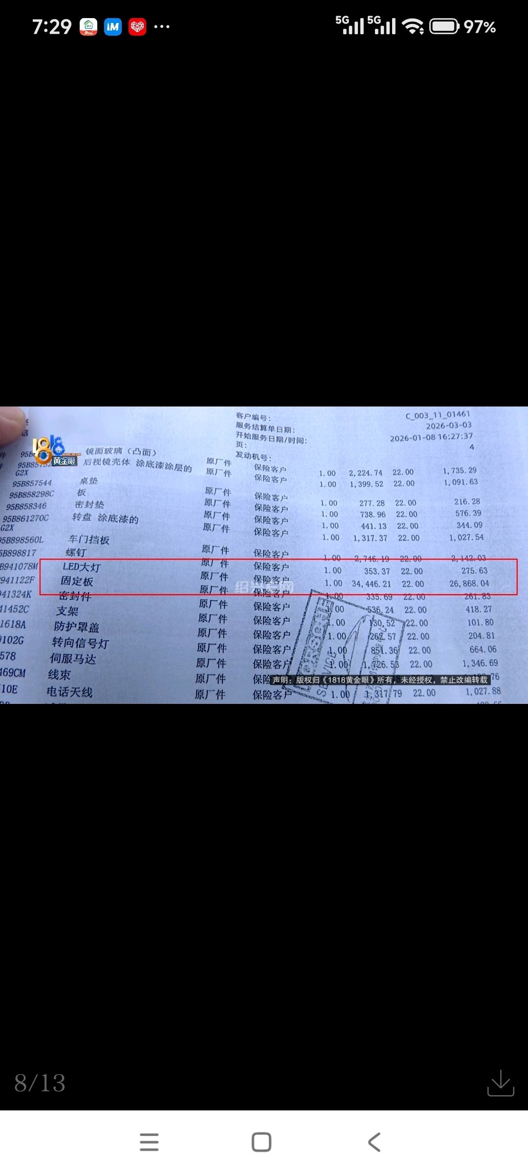 看到保时捷的维修单