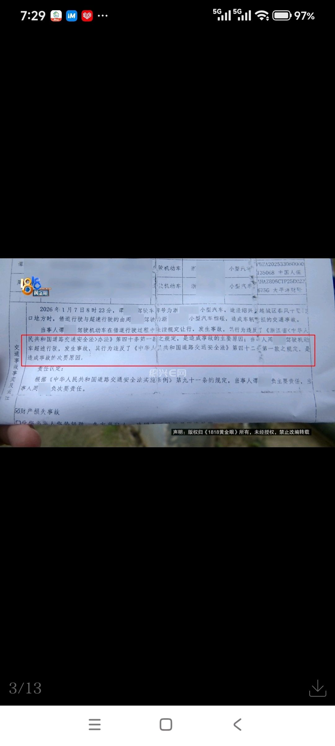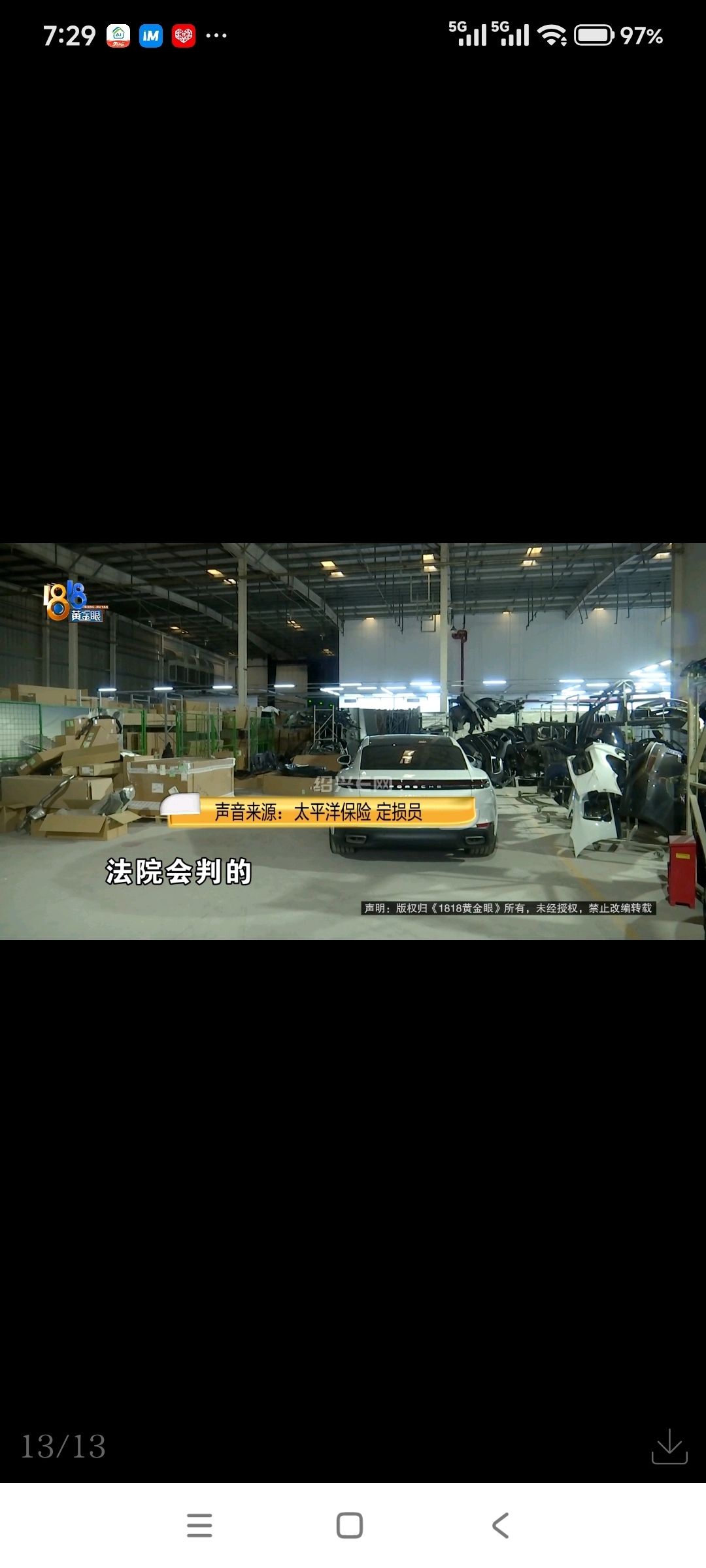 保时捷驾驶员 小周:不是大哥我的天,他竟然还找上你们1818黄金眼。我跟你说这个事情我跟他扯了两个月了,本来是他全责,后面改成三七,昨天我们又去了交警部门,考虑到确实各种因素,交警说五五分,我认了。这个钱要保险公司出的,那保险公司不可能多出这个钱对不对?确实是这次事故里面受伤的我肯定给你赔掉,但如果不是这次事故里面的,保险公司都会去看清单的。