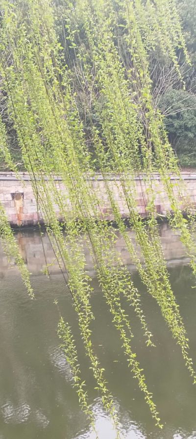 惊蛰十日,柳叶日渐繁茂,色泽由浅绿转为苍翠。杨柳全然挣脱冬日的桎梏,焕发出勃勃生机。万千柳条随风垂落,两两相依,交织成一道道青翠的帘幕。环城河鲁迅路至延安路段的西岸,杨柳树龄最久,苍老的树干镌刻着岁月的痕迹,沟壑纵横的树皮,沉淀着风霜与时光。老树之上,新旧共生,枯条与新枝相依相伴,历经岁月,从容而沉稳,自带一番风骨。