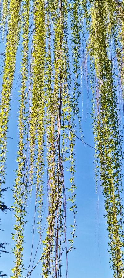 十八天光阴流转,杨柳绿得愈发深沉,愈发浓郁。片片柳叶油亮青翠,在春风里舒展摇曳,盛满生命的光泽。柔韧的柳条随心而动,时而翩然飞驰,时而温婉缠绵,时而清丽若鸿,时而淡雅如仙。水岸之间,已是“万条垂下绿丝绦”的盛景。折一枝柳条,做成柳笛,吹响春日的歌谣;看柳拂清波,听燕语呢喃,闲赏春光,不负流年。