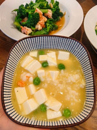 :油热加两个咸蛋黄,小火炒到蛋黄起沙,加入开水,然后加豌豆虾仁豆腐,适当调味后加点水淀粉勾芡就行(2026-03-23 11:30)