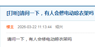 :这种小事情自己可以弄的,就看自己想不想学,我家里老宅自建房,太阳能热水器,10几年前也是坏了,修一次100多,过了一段时间又坏了,再修,又是100多,但是这两次修理,我都全程盯着看、学,后来再坏我全是自己修的,需要配件,淘宝直接买,便宜的很[表情](2026-03-23 10:43)