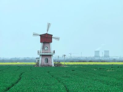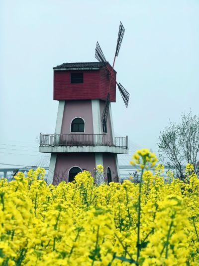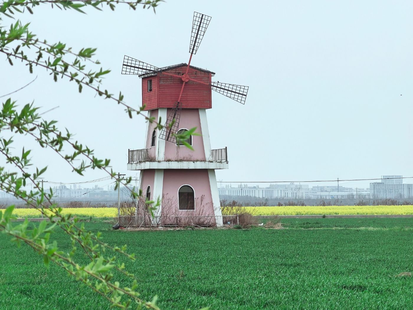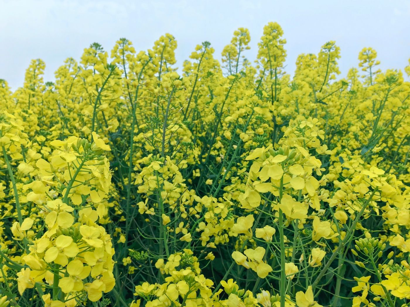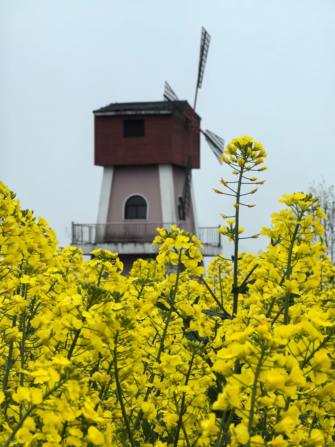 金黄色的油菜花、绿油油的小麦田,这才是匹配的田园风光