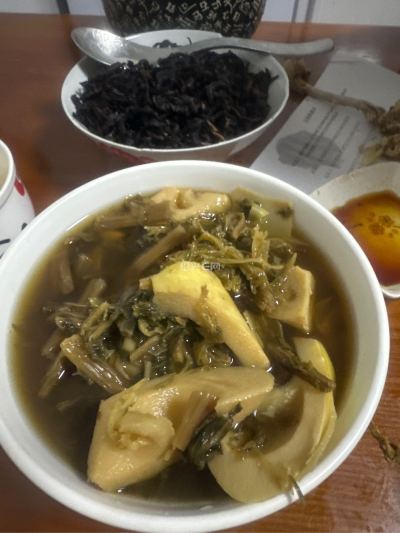 刚挖过来的笋加去年的干菜一煮放点味精即可成无法抗拒美味