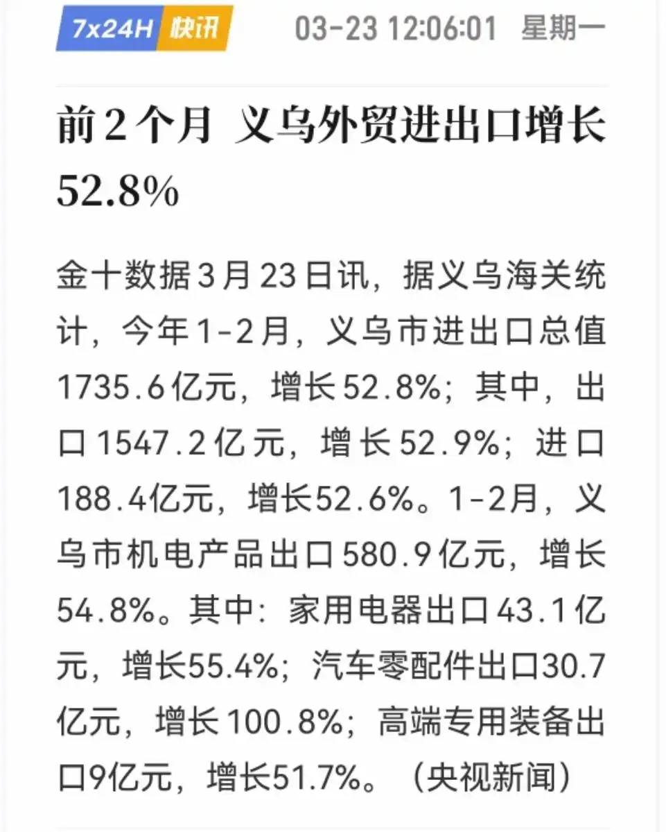 :现在是 整个绍兴地区的外贸被义乌 一个县级市吊打的体无完肤呀!(2026-03-25 09:38)