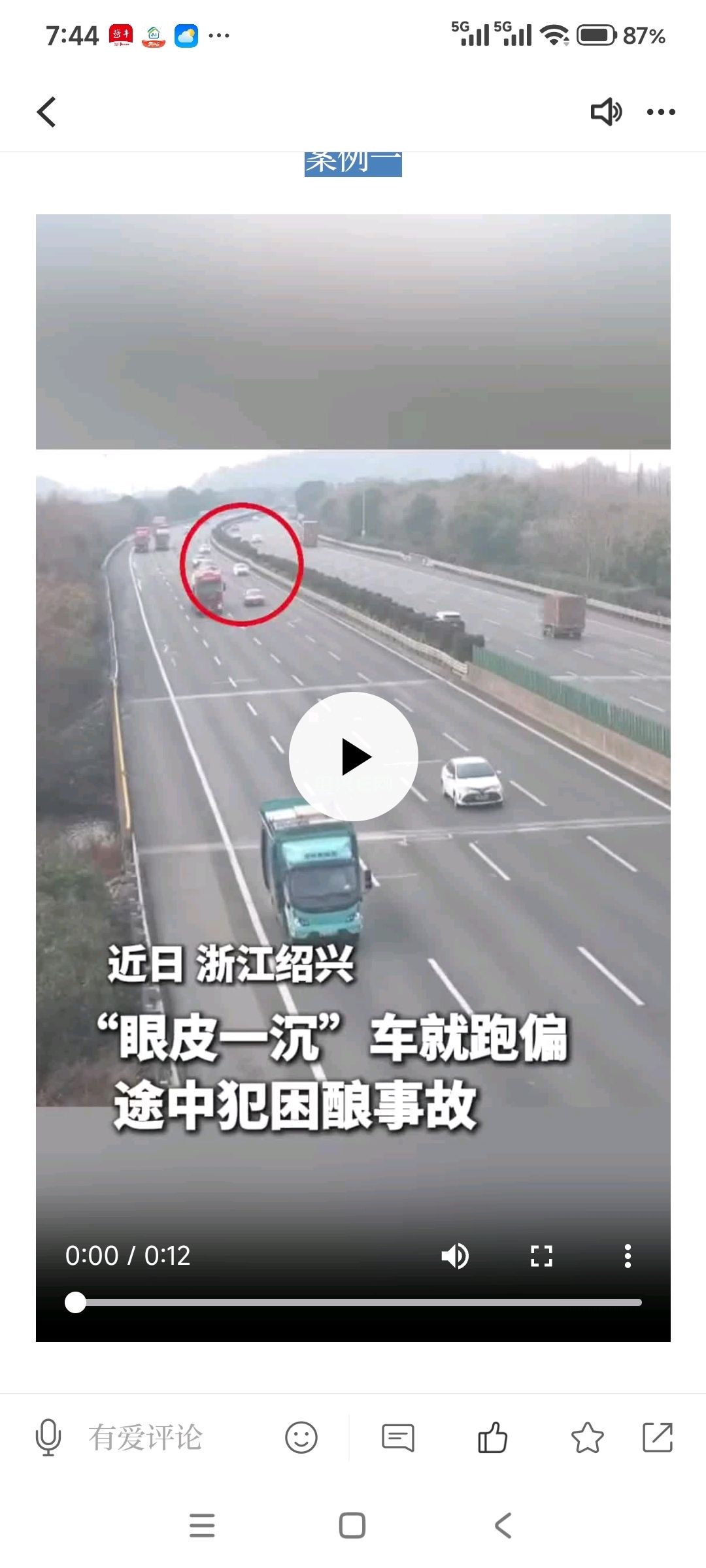 驾驶人处于重度疲劳时,往往会下意识操作或出现短时间睡眠现象,严重时会失去对车辆的控制能力。