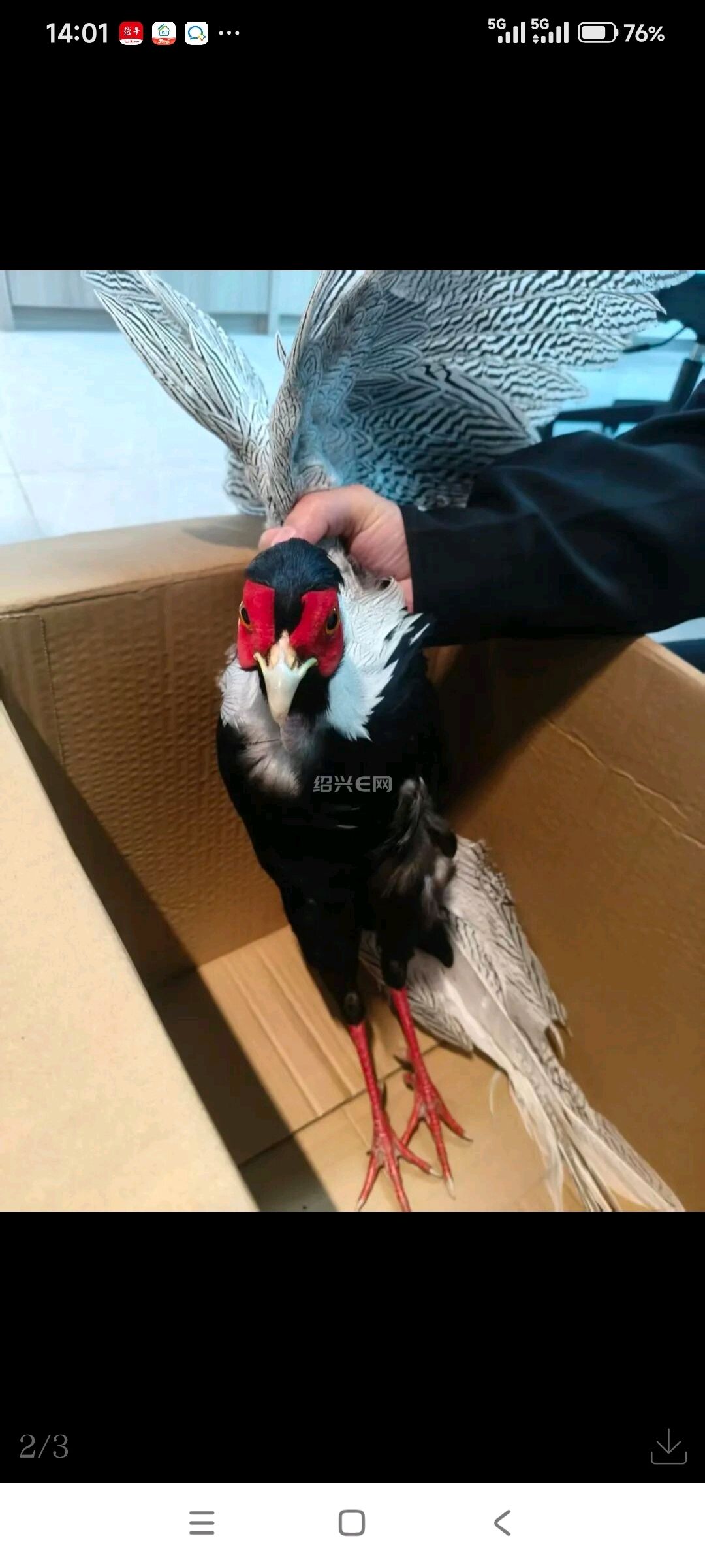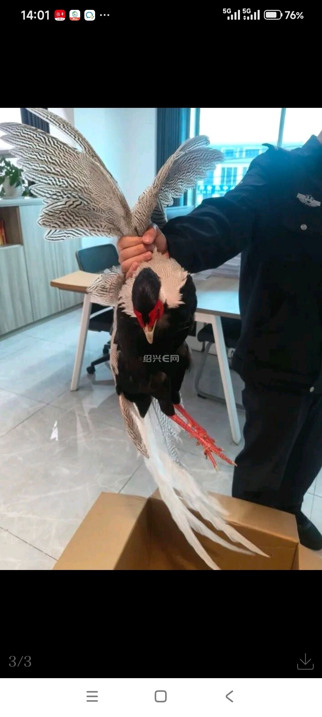 队员随即将其安全带回派出所,并通过手机查询对比,初步判断为国家二级保护动物白鹇,随后立即联系了市自然资源和规划局。