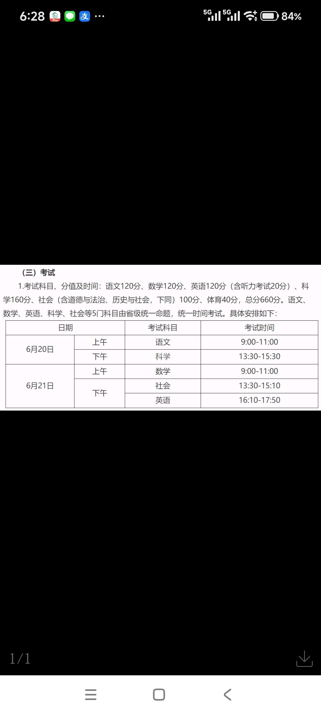 通知显示,考试日期在6月20日、21日两天,语文120分、数学120分、英语120分(含听力考试20分)、科学160分、社会(含道德与法治、历史与社会)100分。