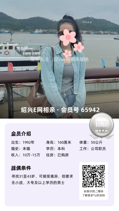 她想找43岁以下,大专及以上学历,未婚或离异无孩的男士,想认识她可以+65942