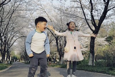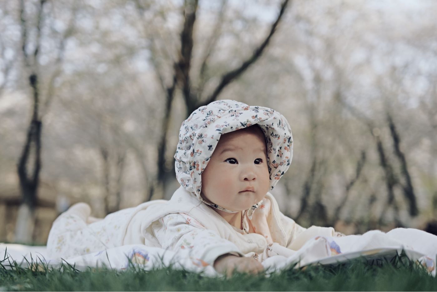 五个月的你或许还不懂什么是樱花,