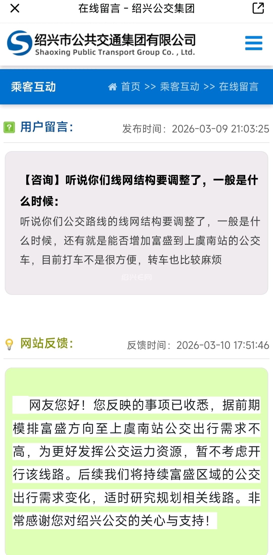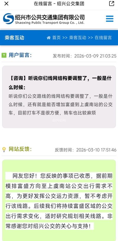 :他们可以开通从皋埠出发进经富盛到上虞南站的公交车(2026-03-31 11:33)