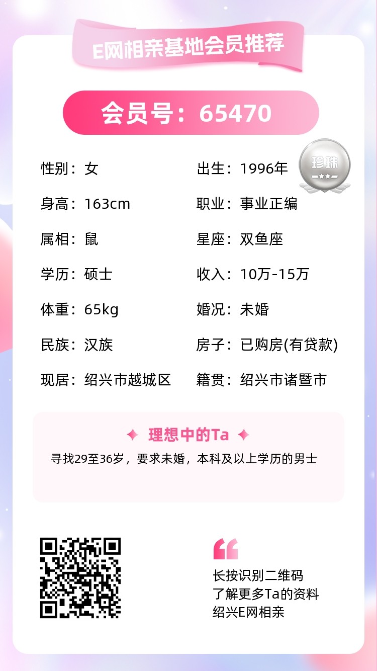 她想找36岁及以下,本科及以上学历的未婚男生,想认识她可以私聊介绍+65470