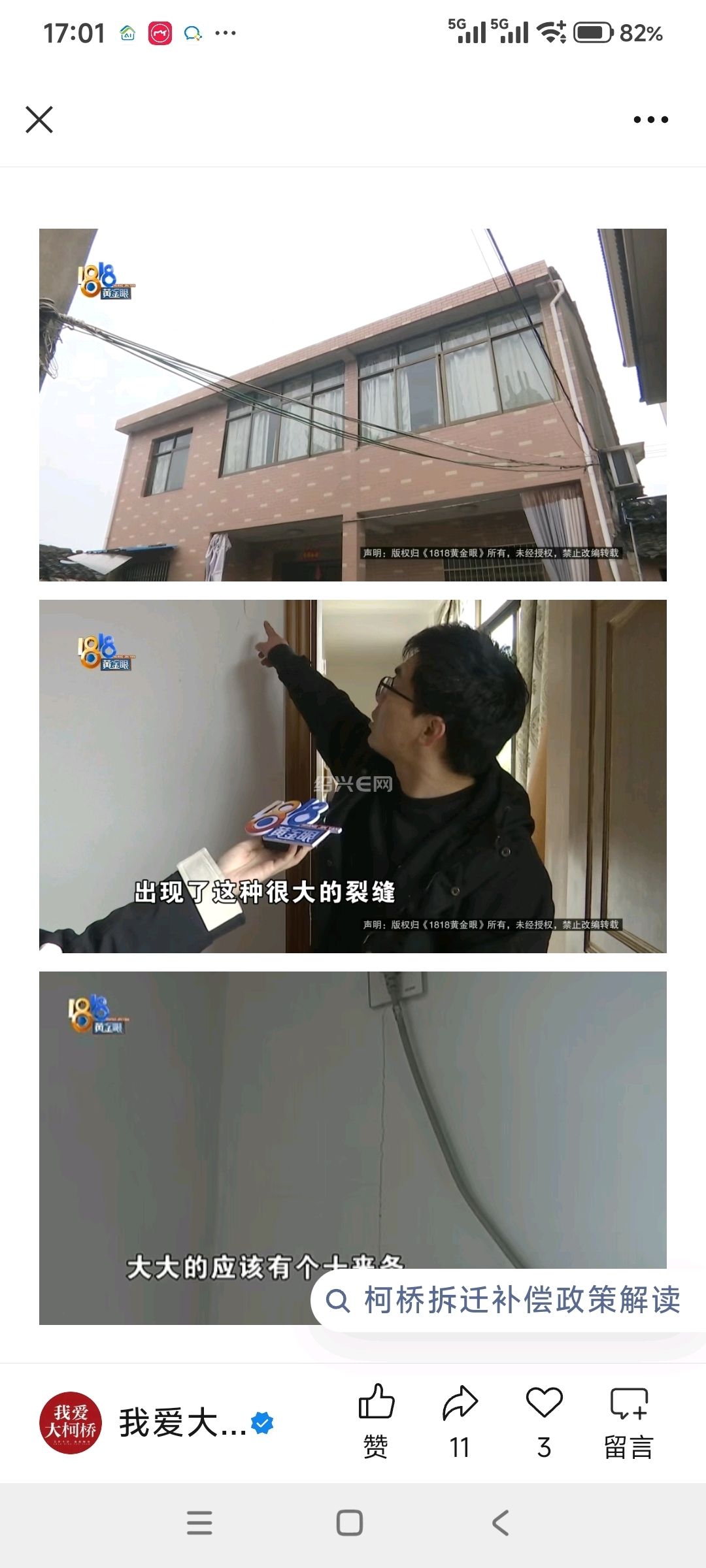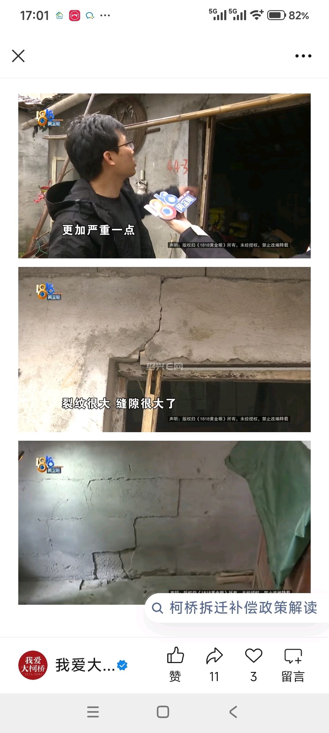 绍兴柯桥兰亭街道黄贤村村民金先生找到1818黄金眼,说自家自建房出现多处裂缝,小屋子已用木板支撑,他推测这些情况与附近厂房拆迁有关。