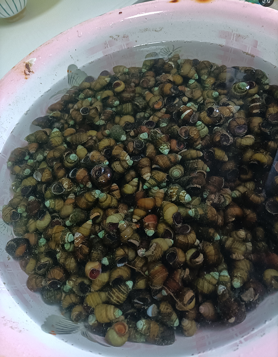 小的时候。螺丝变着法子吃,毛螺丝,清水煮煮,加点盐,用筅帚丝挑着吃,如果放点酱油,就更鲜,拿起一颗螺丝,先吸一口里面的卤水,那个鲜来,然后再用筅帚丝挑出肉,两三颗螺丝一口饭。
