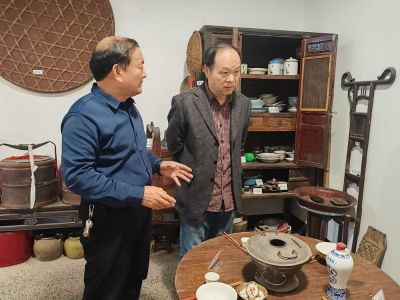 近日,绍兴市餐饮业和烹饪协会副会长兼名厨专业委员会主任、资深级中国烹饪大师、浙菜宗师、浙江省级绍兴菜非遗传承人茅天尧,专程赴绍兴古越生活品爱心陈列室参观考察,关注绍兴的民俗文化。