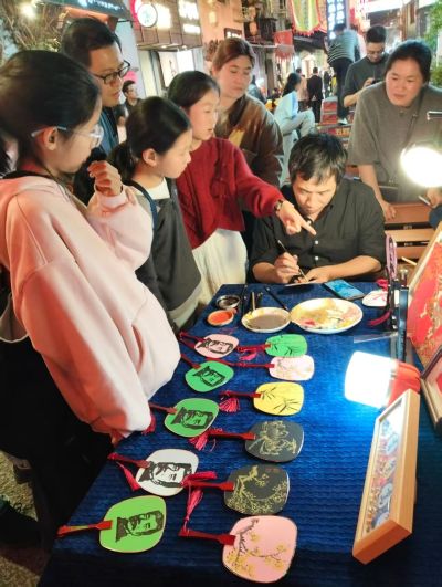 现场的顾客们被蒋雪平老师的艺术魅力所折服,大家纷纷拍手称颂,加入到排队的行列中。