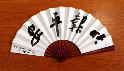 蒋雪平老师正专注地在街头现场书画,周围围满了顾客,他们排着队,耐心地等候着蒋老师的墨宝。