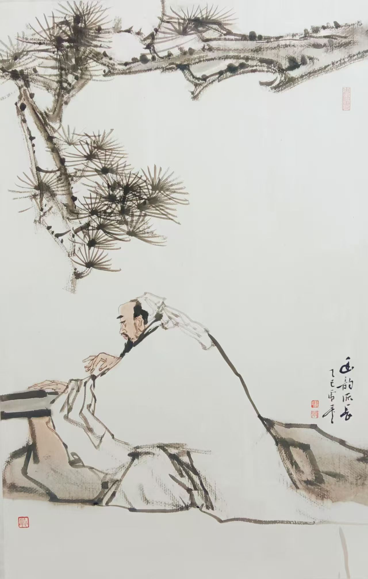 他的人物画,以细腻的笔触和生动的形象,展现出人物的内心世界和情感变化。无论是描绘古代文人墨客的儒雅风范,还是刻画现代人物的生活百态,他都能做到形神兼备,栩栩如生。