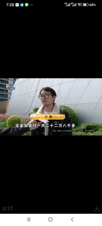 小童:先交了五万的定金,还有一万的车位费,六万,然后后面差不多一个星期,又付了首付,定金加首付一共二十二万八千多。