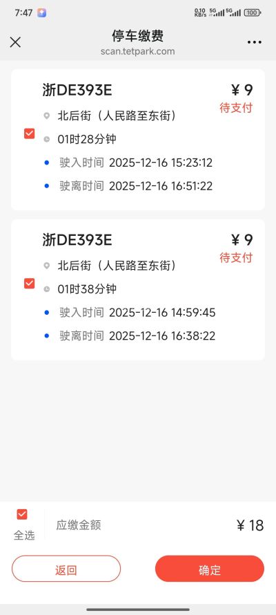 大家仔细看这个时间和地点,同样的地点出现了两张差不多时间的收费,其中有一小时出现了重叠这还是今天我无意当中发现这种重复收费,而且我根本没有收到单子,完全就是一停而过,以前也不知道上了多少当,大家缴费的时候一定要看仔细了