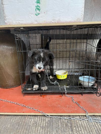 越城区孙端街道中央酒库内有一只黑色小流浪狗,刚出生没多久脖子受伤被好心小姑娘带回去救治,也已经打了疫苗,现在两个多月,四脚踏雪,胸口嘴巴和额头有白色,眉清目秀,性格乖顺。