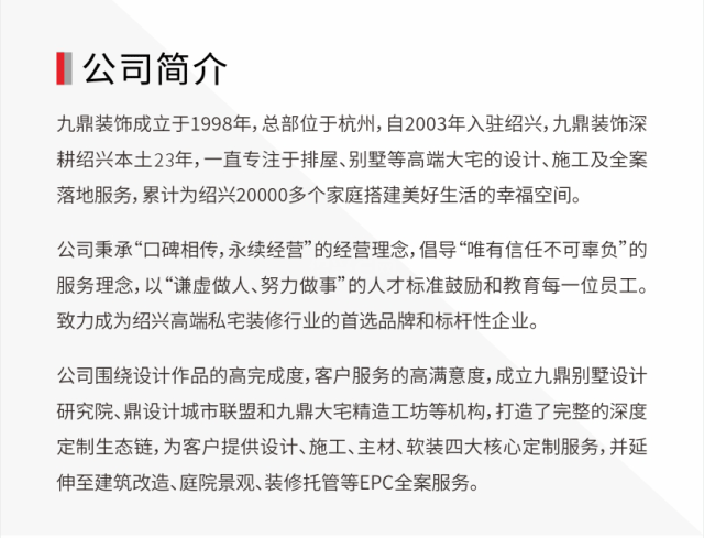 感恩每一位客户的信任与选择,绍兴九鼎装饰始终以精工筑家、诚信服务为初心,将客户的期待,转化为每一处工艺的坚守、每一份设计的用心。今后,我们将不负信赖,以更优质的服务、更精湛的工艺,回馈每一份客户的认可与托付。