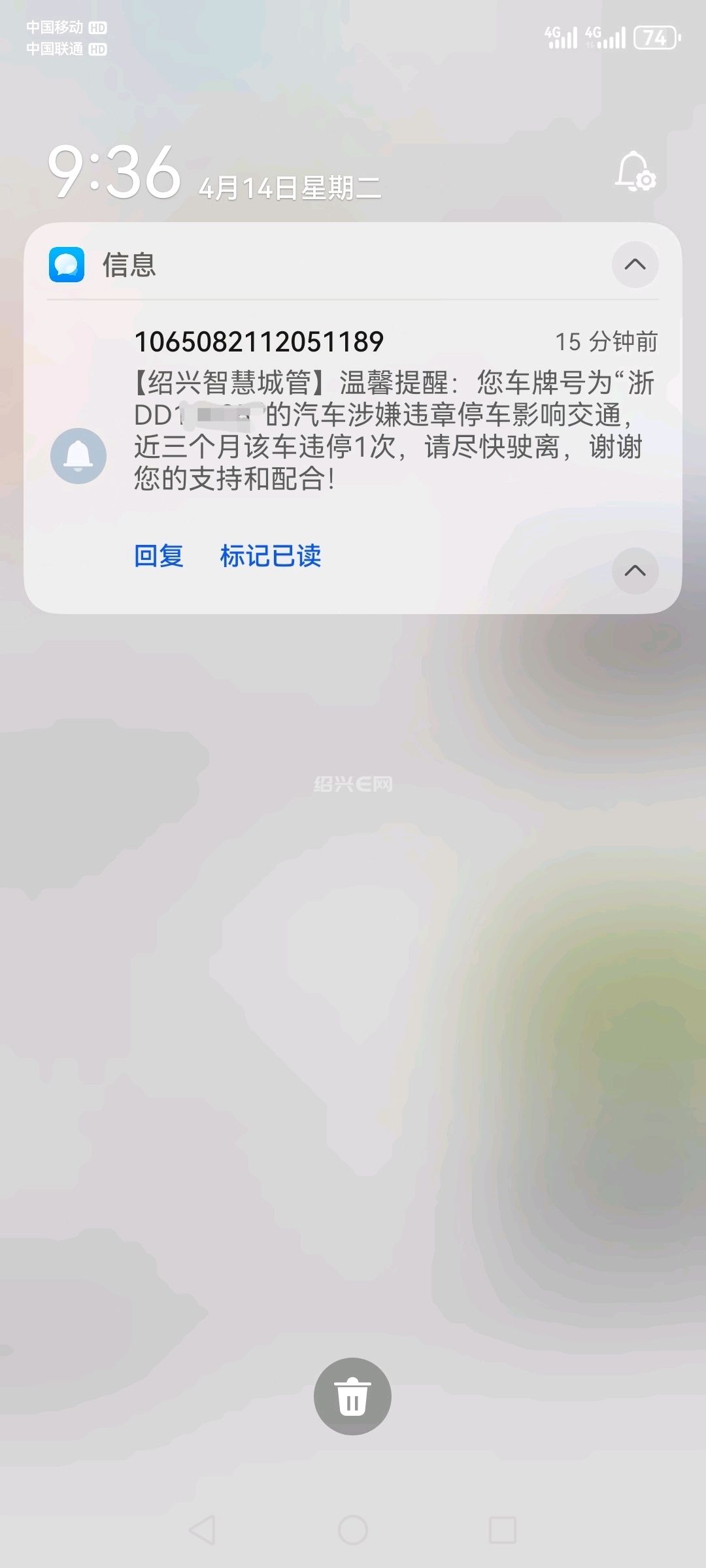 刚收到了违停提醒,幸好有提醒,要不然中招了,