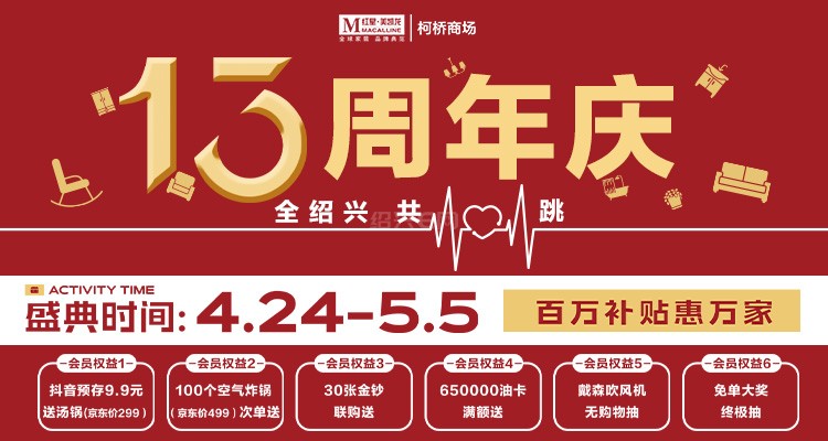 柯桥红星美凯龙13周年庆重磅来袭!