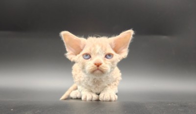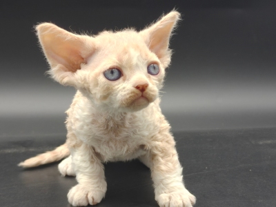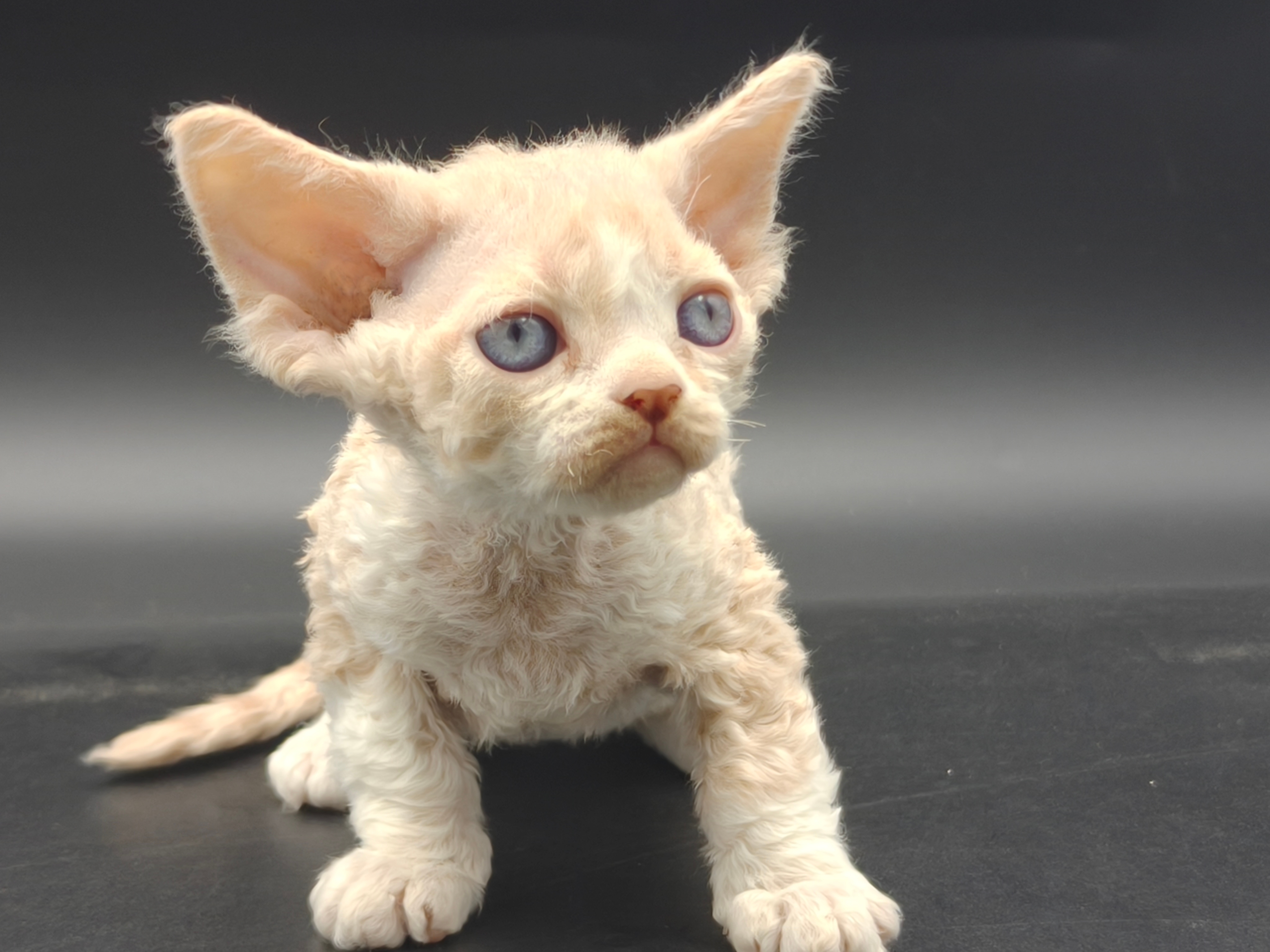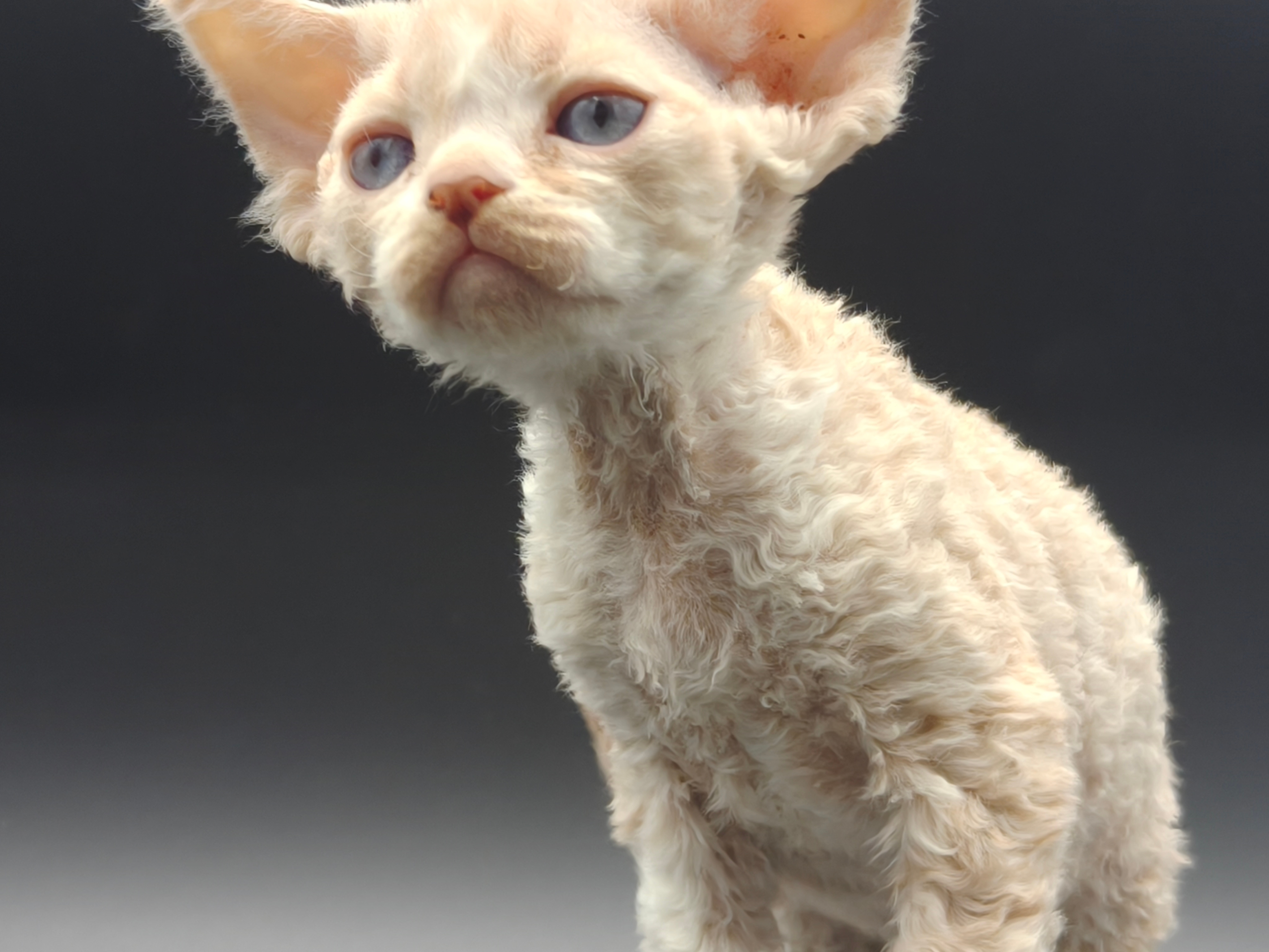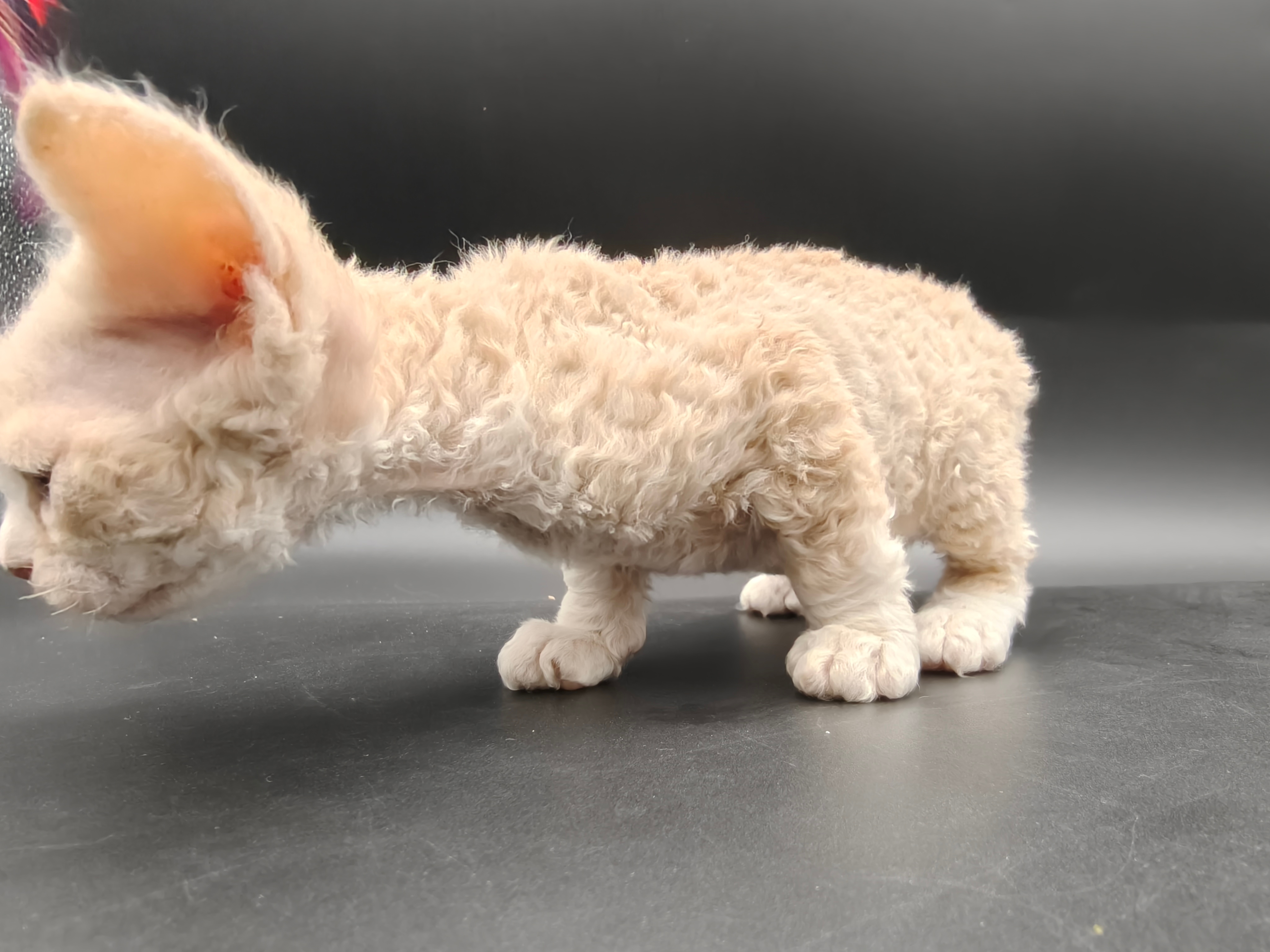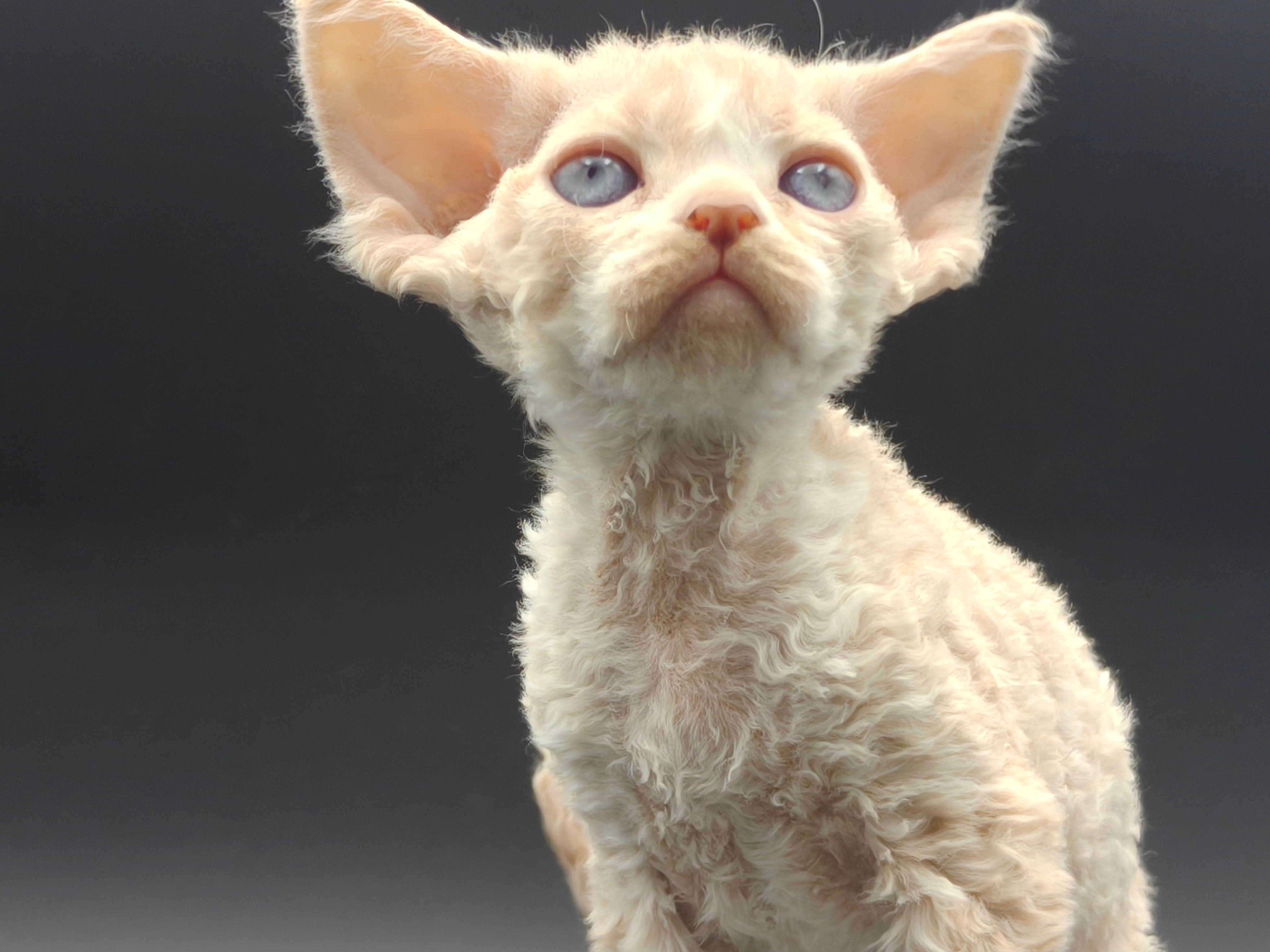 纯种德文卷毛猫,目前2个月多!精灵感爆棚,性格超粘人!品相耳位超低,毛浓密!