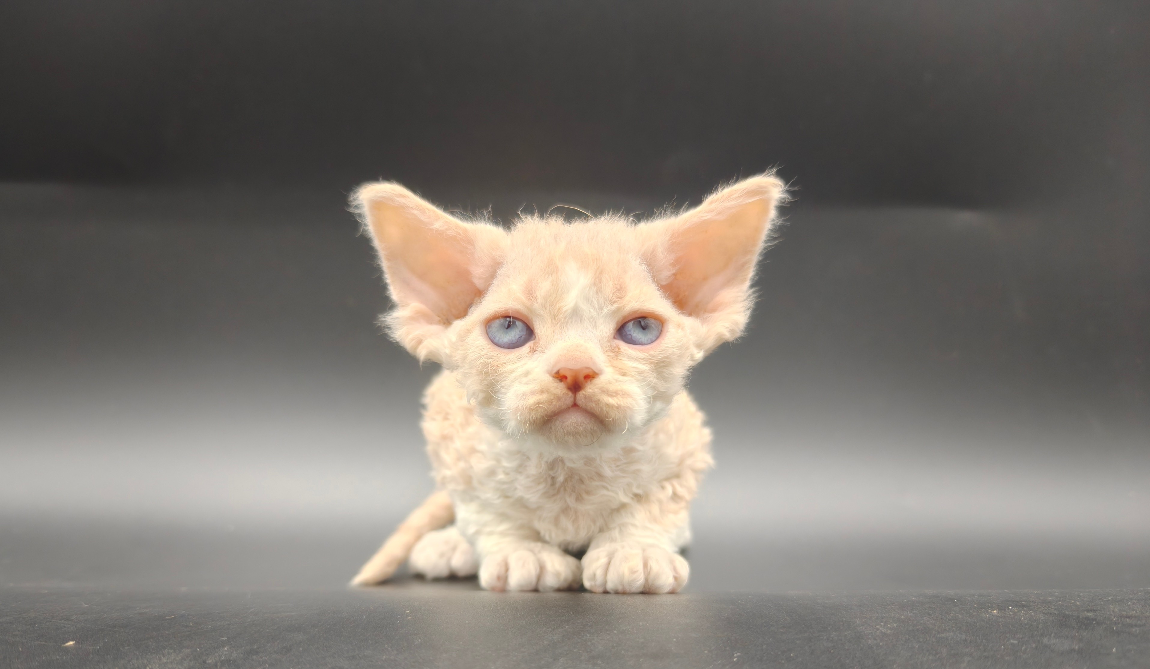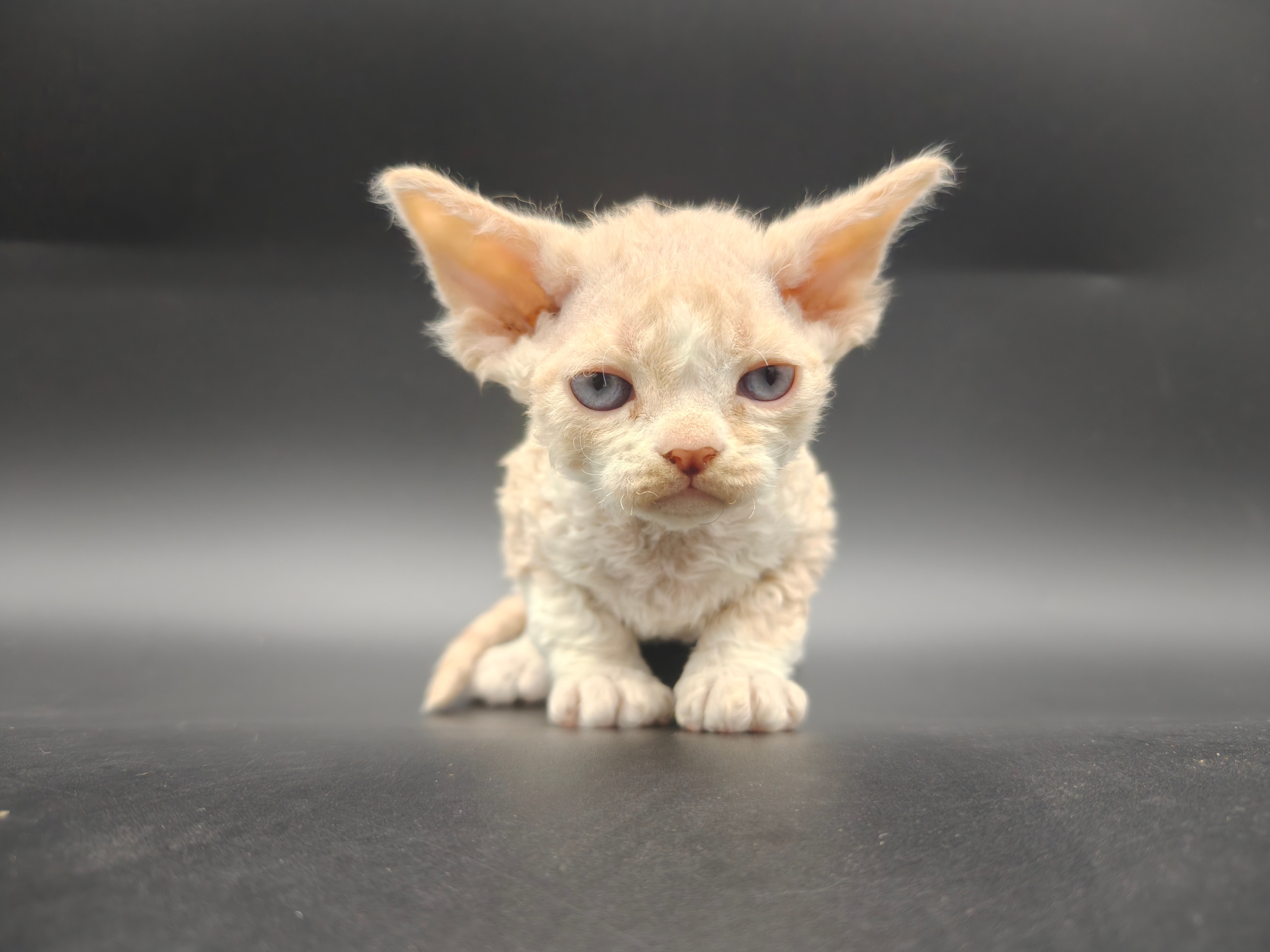 德文卷毛猫1个多月稀有色乳白弟弟一枚,价格2999!
